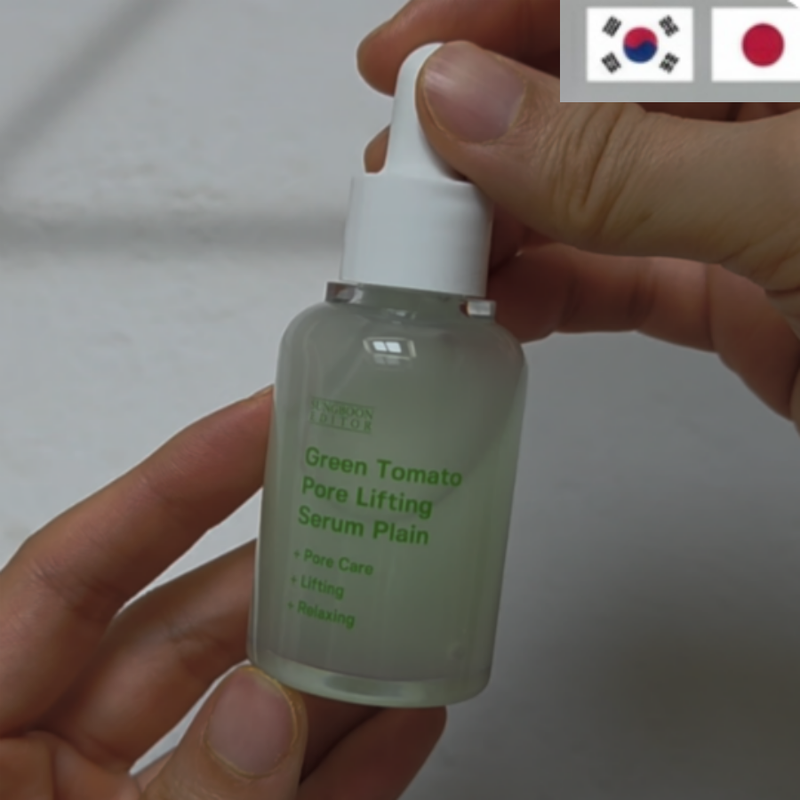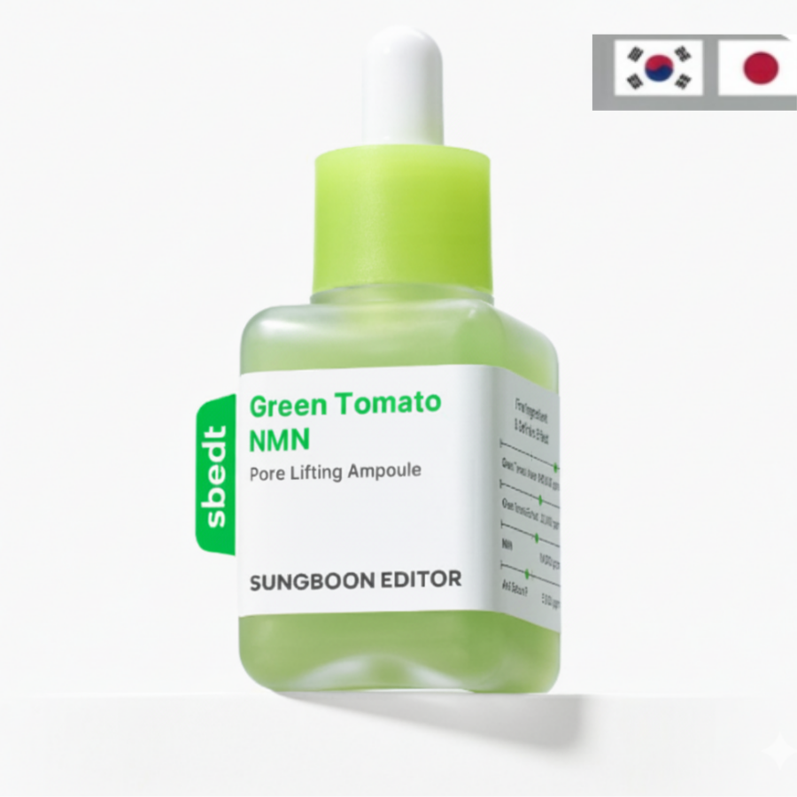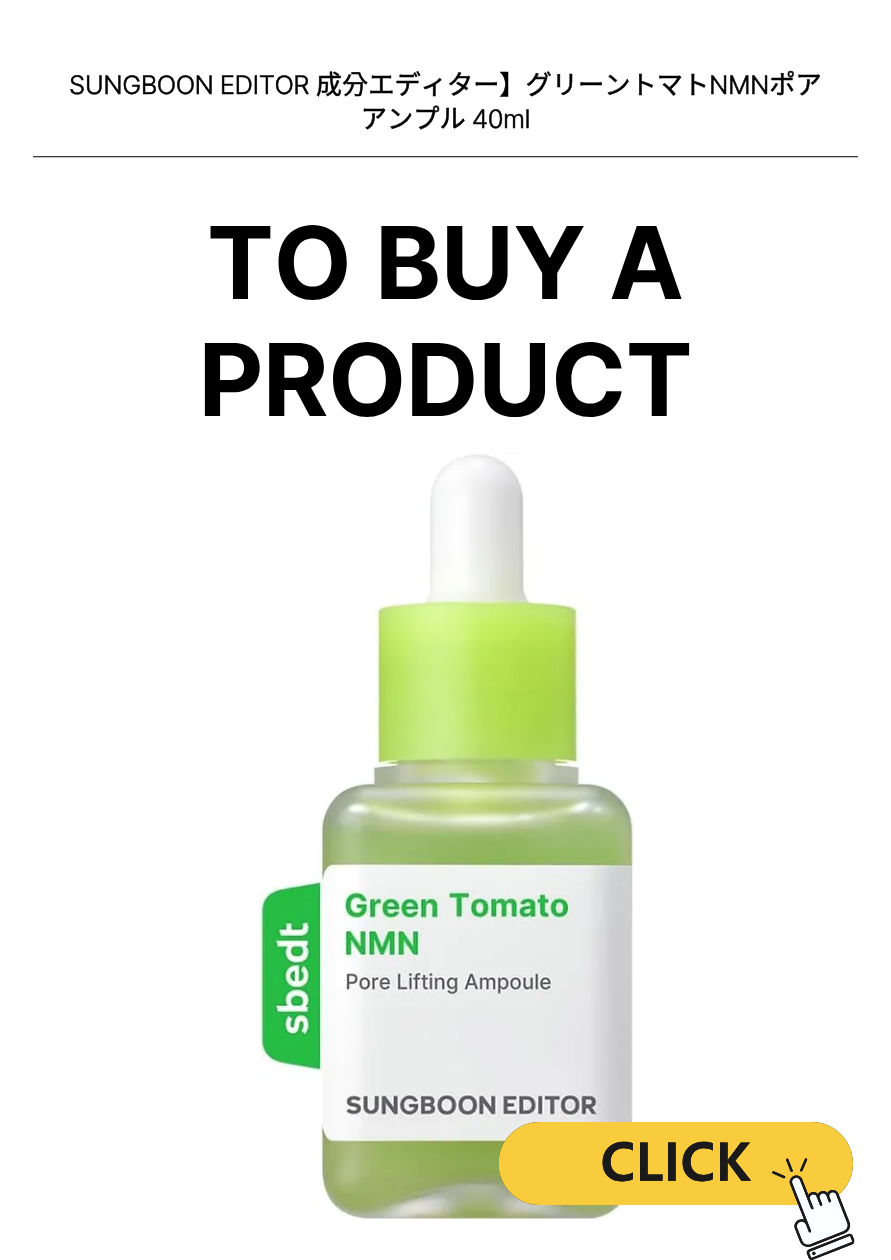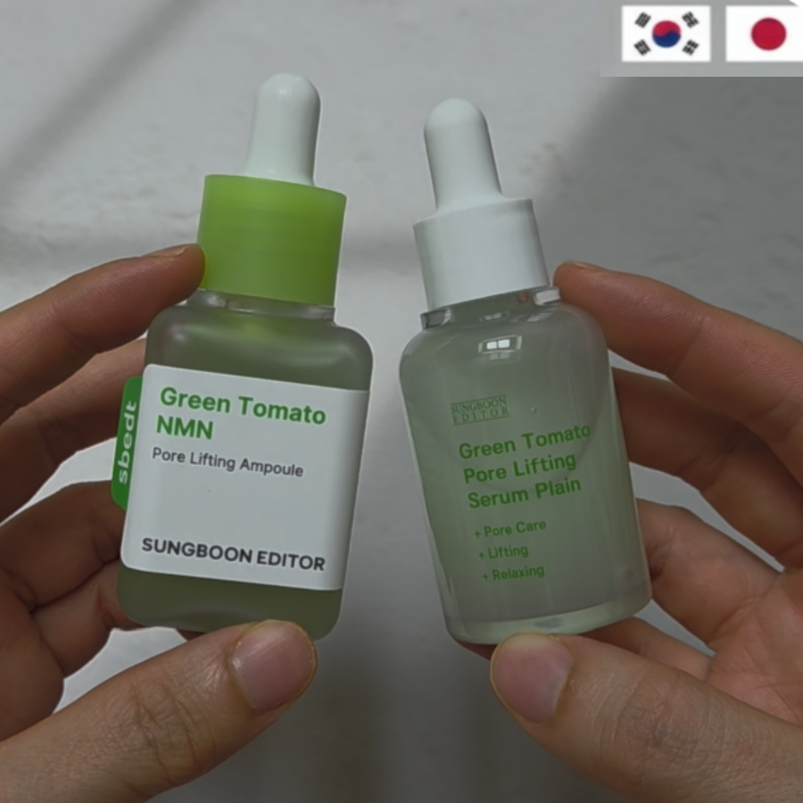 こんにちは、今日私がレビューする製品は、ソンブンエディターの「グリーン・トマトNMNポア・リフティング・アンプル」です。でも、この製品が「グリーン・トマト・ポア・リフティング・セラム・プレーン」という名前でダイソーにも発売されているんです。これが「オリヤン(オリーブヤング)のジェネリック」バージョンとしてすごく有名なんですよね!
